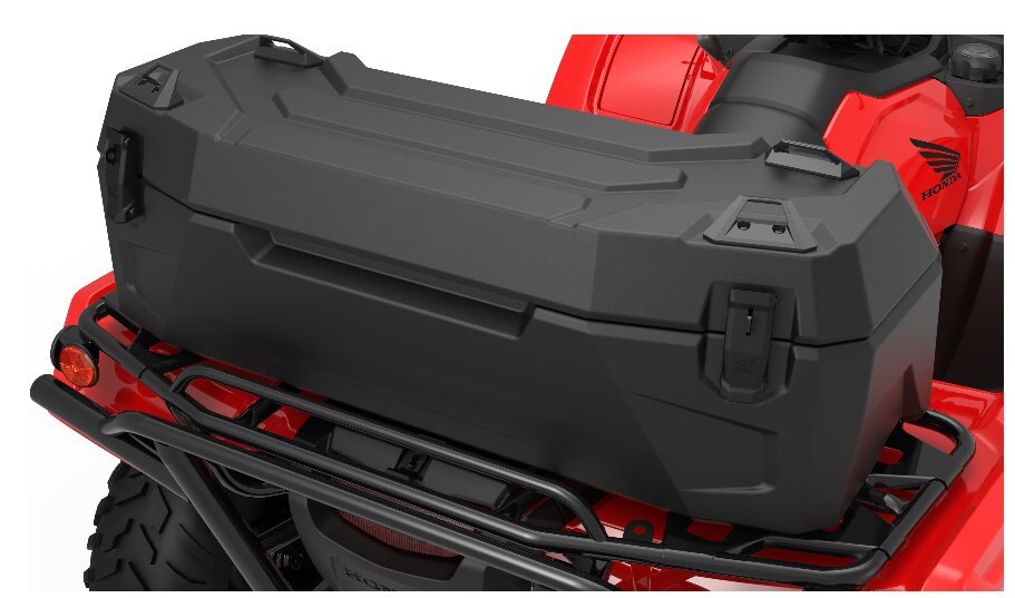 • 17.2 Gallon (65 Liter) Cargo Box is lockable and weather sealed for secure, clean and dry storage. • 4 tie down points on the lid provide additional carrying area. • Honda Pro-Connect™ attachment system for quick installation and removal. • Conveniently mounts to factory rack.