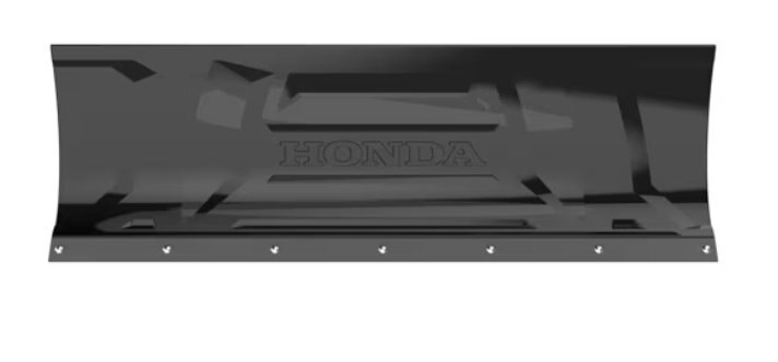 Blade is 52" wide and 17" high, and is powder coated for durability and corrosion resistance. • Made from thick, 15-gauge steel with heavy-duty formed reinforcements and a center cross tube that adds structural rigidity for extra support. • Features progressive radius design for more effective snow rolling. Thick reversible wear bar and adjustable plow skids control plowing height of the blade. • Includes unique Honda logo stamping and graphics. • Requires Honda Accessory Plow Push Tube and Honda Accessory Plow Mount.