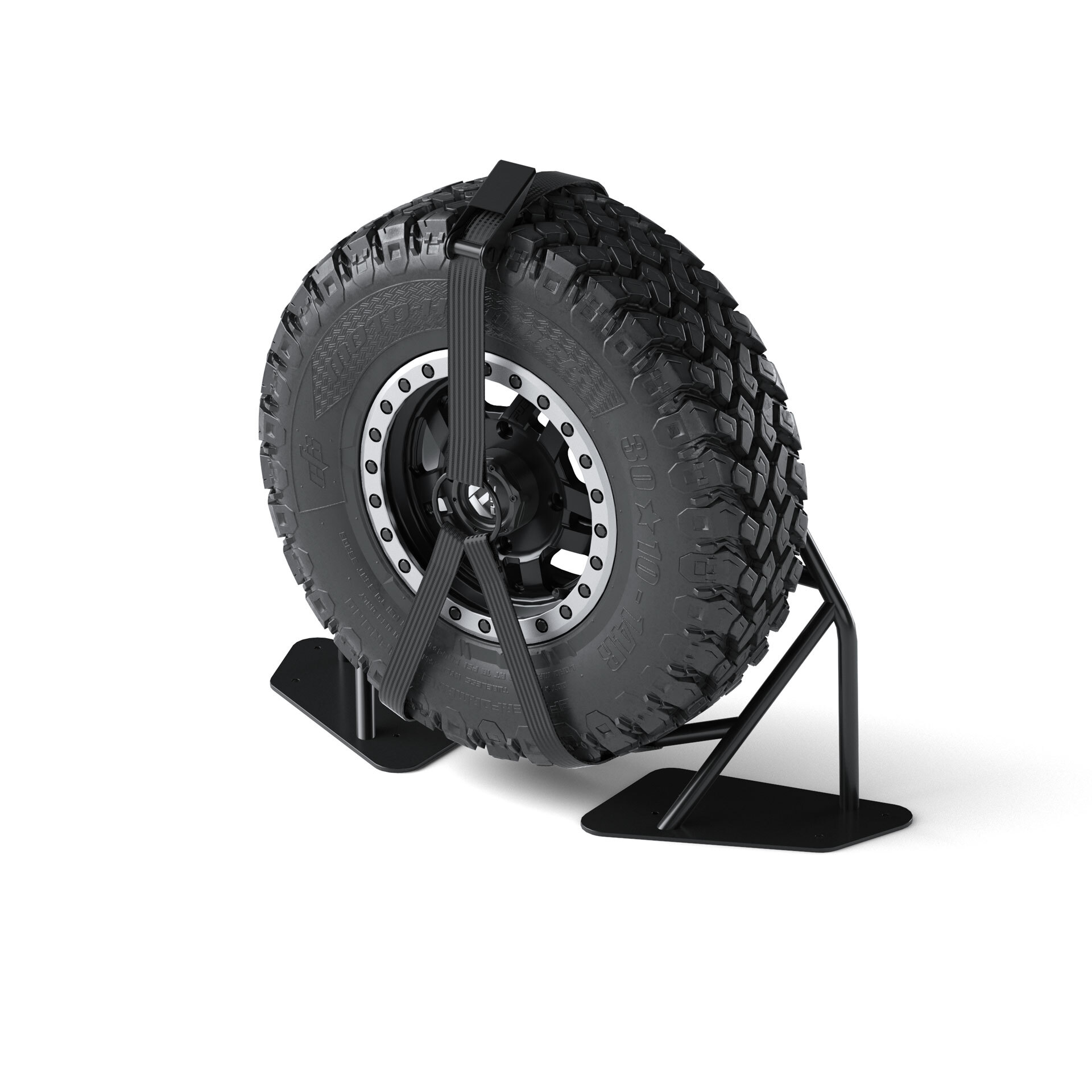 Securely mounts in the bed of the unit to hold up to a 32" tire.