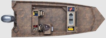 31-gallon bow divided livewell with side storage. Bow has a wide deck for casting and your optional trolling motor.