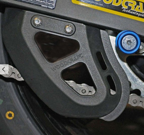The forward part of this guard has a sloped surface that covers the gap between the outside of the swingarm and the chain better than any standard guard we've ever seen. With this new style guard- the only gap between the actual guard and the chain is the clearance needed to avoid the guard contacting the chain. Woodcraft has worked hard to provide protection where previous guards have not. While no guard can prevent injury in every circumstance- the new Woodcraft Wide Coverage Toe Guard provides the most protection available on the market today.