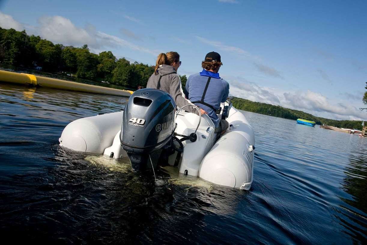 PROTECTION FROM THE ELEMENTS The F40 features a proven one-piece cowling with an intake air drain system to easily and efficiently drain away any water that enters the cowling during normal engine operation. Incoming air is routed through a labyrinth of passages that help trap and drain water before it enters the engine's intake for maximum reliability. |