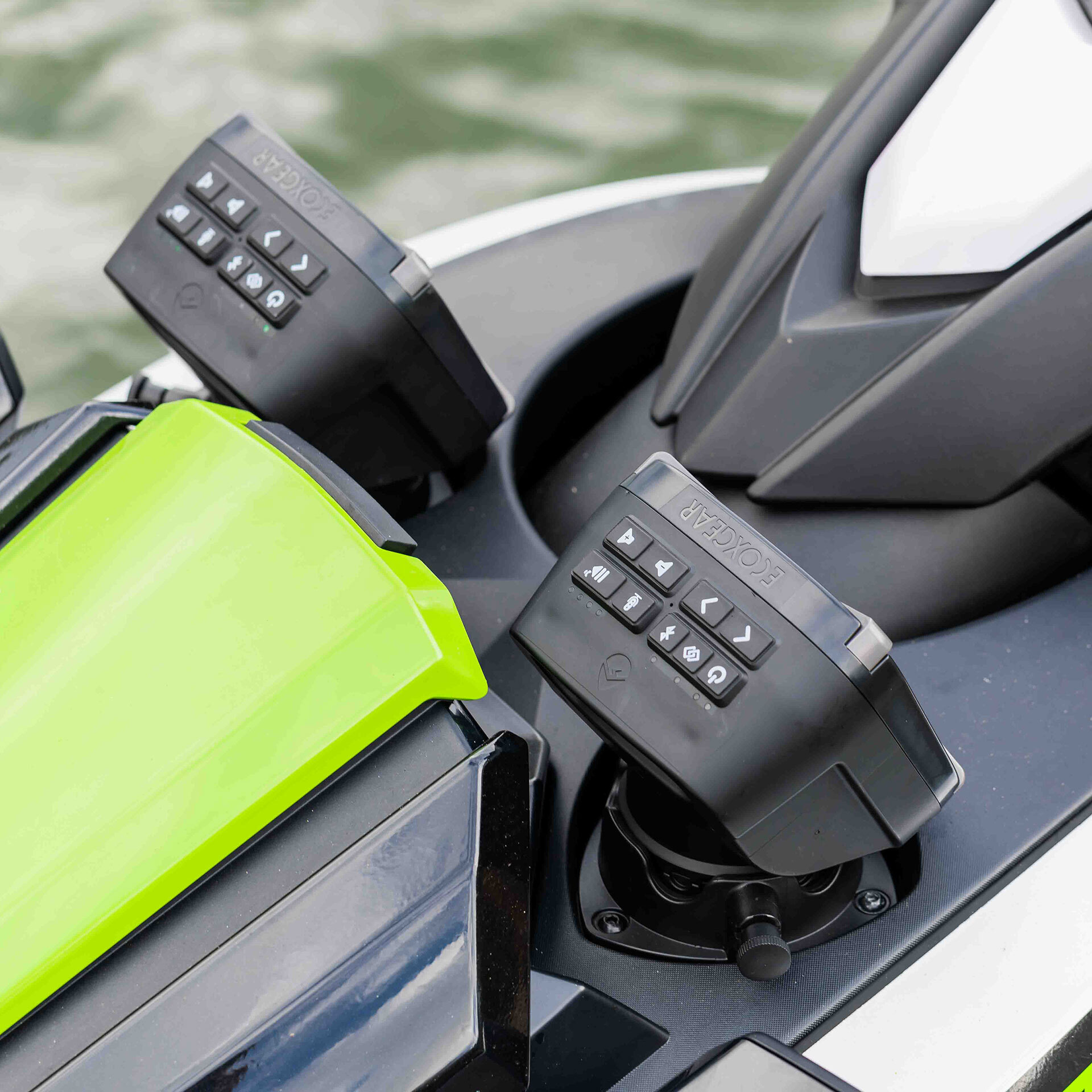 Take your sound out on the water with these rugged waterproof Bluetooth® speakers, included in this convenient Yamaha Audio Package. Incredible sound in a portable package, and is still tough enough for every outdoor adventure. Package includes: 2 Yamaha Marine Bluetooth® speakers by EcoXGear, custom FX cup holder mounts, supporting hardware and installation instructions.