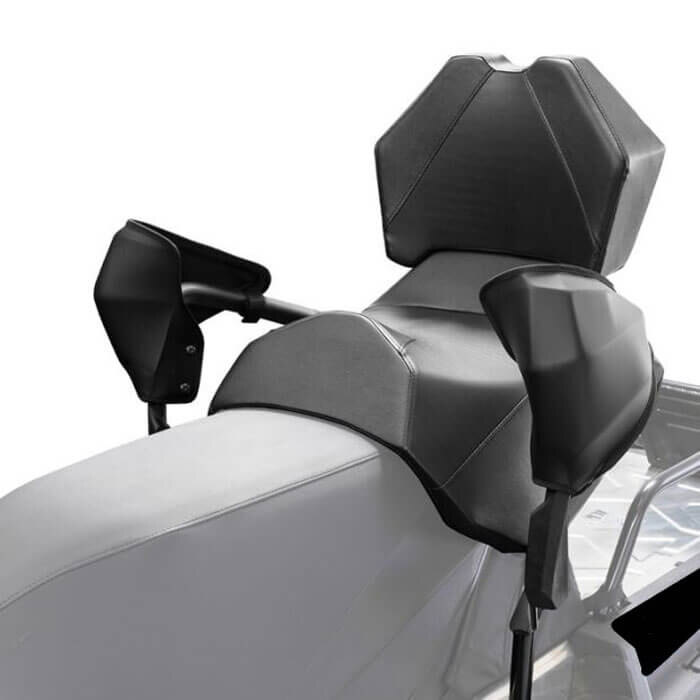 Includes passenger seat with adjustable handholds, quick-release footrests, and optional heated grip warmers (requires Heated Grip Warmer Switch Kit, SMA-8JP2P-ST-WH, sold separately)