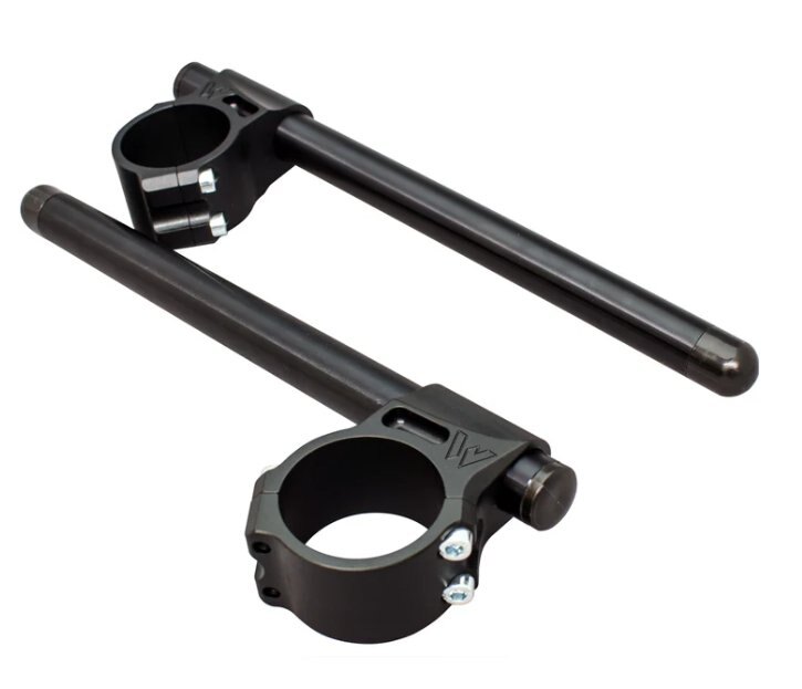 The motivation behind the Woodcraft 3-piece Split Clip-Ons is simple: installing- servicing- and removing clip-ons can be a real pain! With our 3-piece design we've eliminated the need to disassemble the front-end to service your Clip-Ons. These quality parts are made in the USA! Lightweight- great looks- improved strength- adjustability and easy installation make Woodcraft 3-piece Split Clip-Ons an essential addition to any sportbike. These kits include a pair of bars.