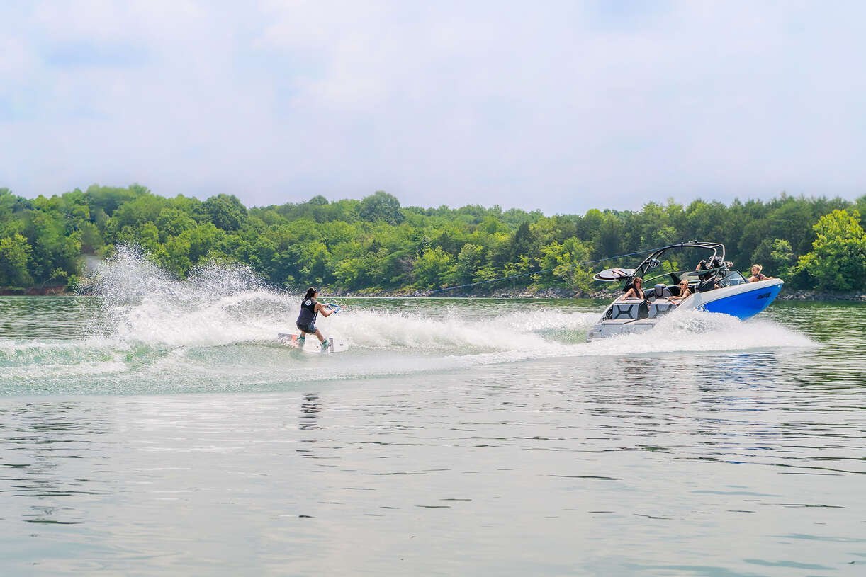 Specifically designed for watersports action the 222XE features an 1,100-pound triple ballast system, board racks, oversized billet aluminum rearview mirror, and premium sound system that includes a tower-mounted sound bar, subwoofer, 500-watt amp and six Wet Sounds® audio mid-range speakers. |
