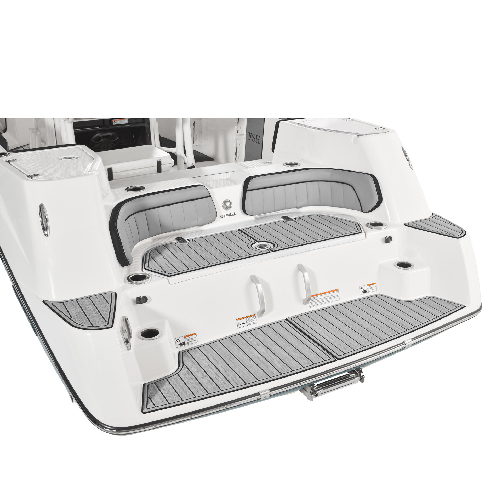 Marine Mat® flooring adds an additional non-skid area and padding to the swim platform, providing grip, comfort, and safety when moving around the rear of your Yamaha FSH boat.