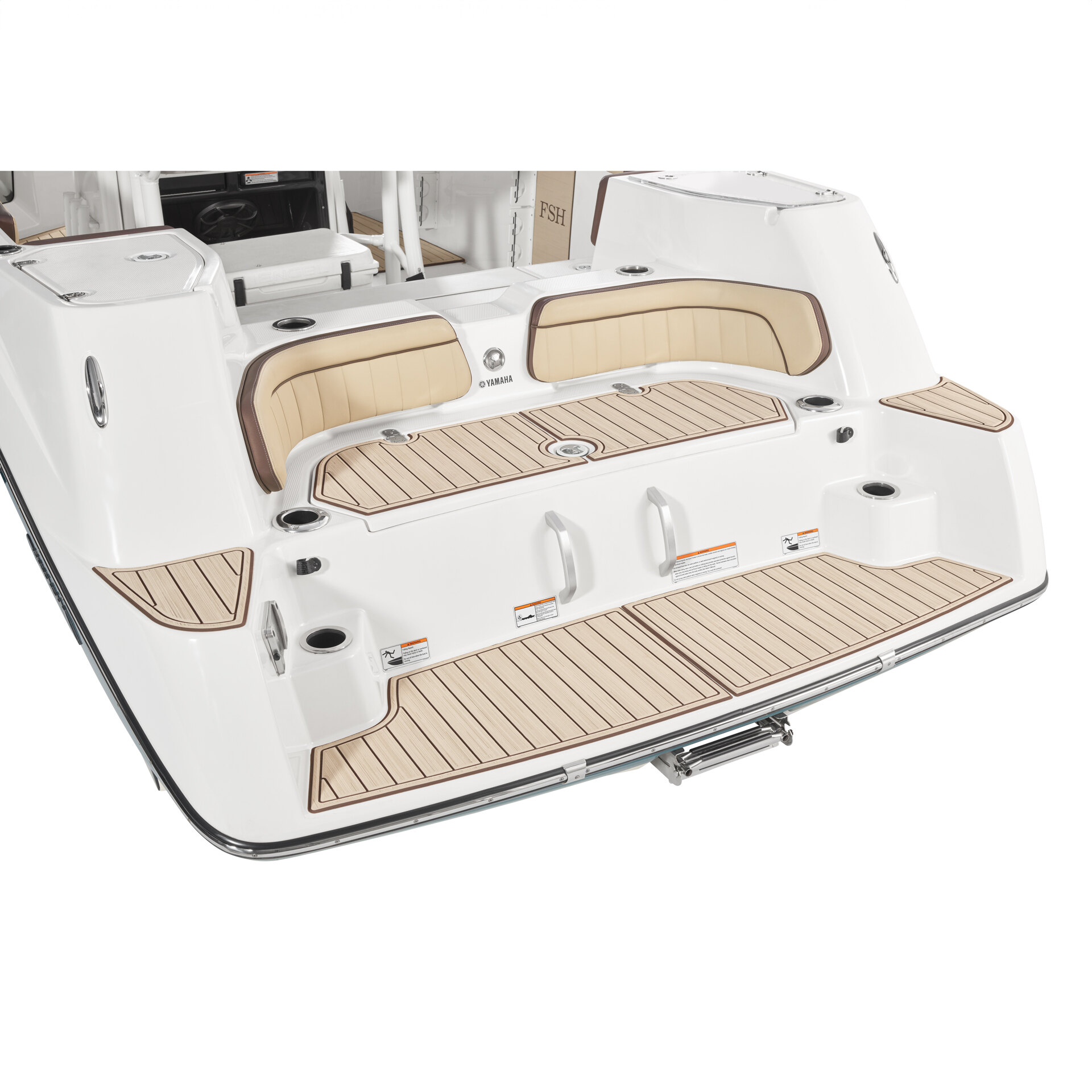 Marine Mat® flooring adds an additional non-skid area and padding to the swim platform, providing grip, comfort, and safety when moving around the rear of your Yamaha FSH boat.