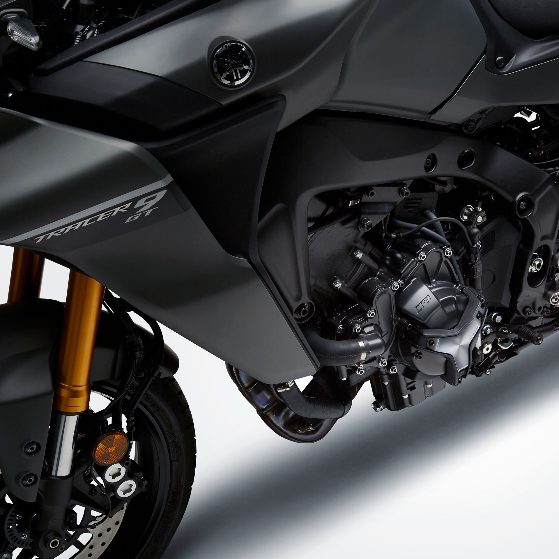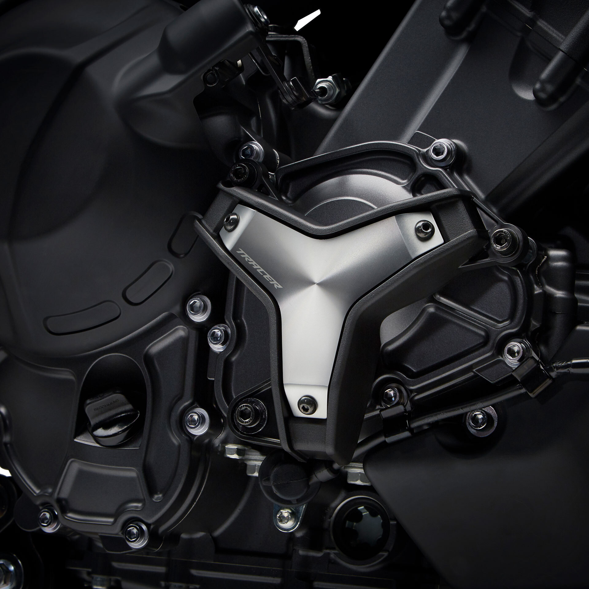 Limiting damage to engine when dropped. Roller protection can limit damage during low sider. 3-point, stable fixation, brushed aluminum cover.
