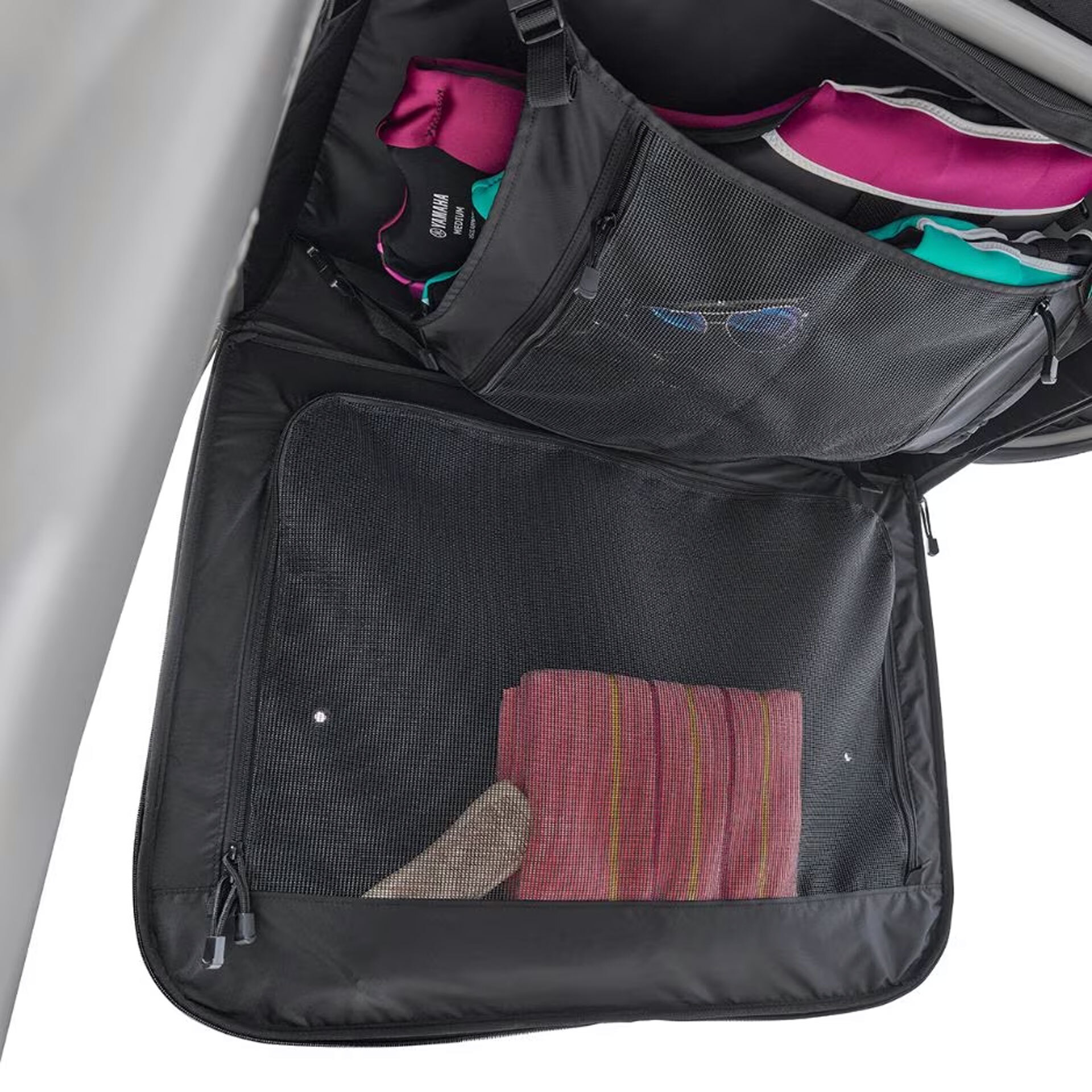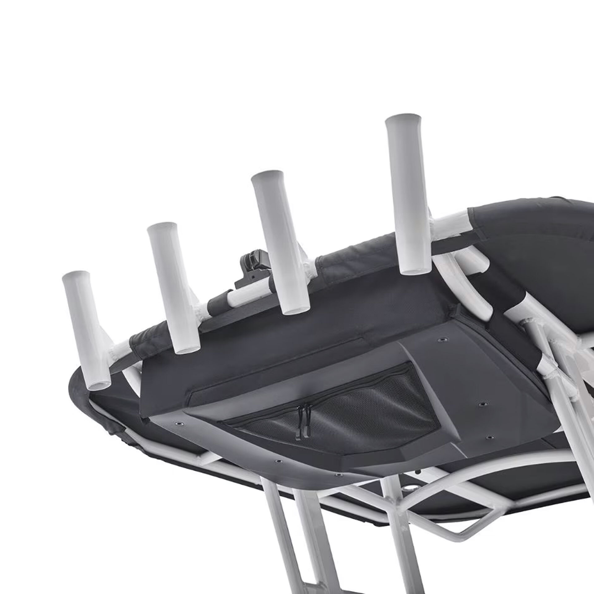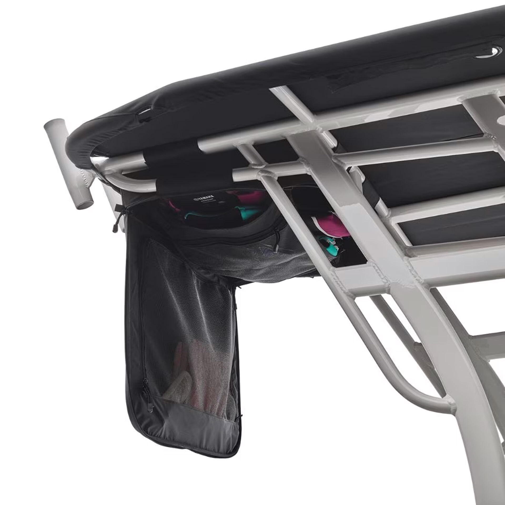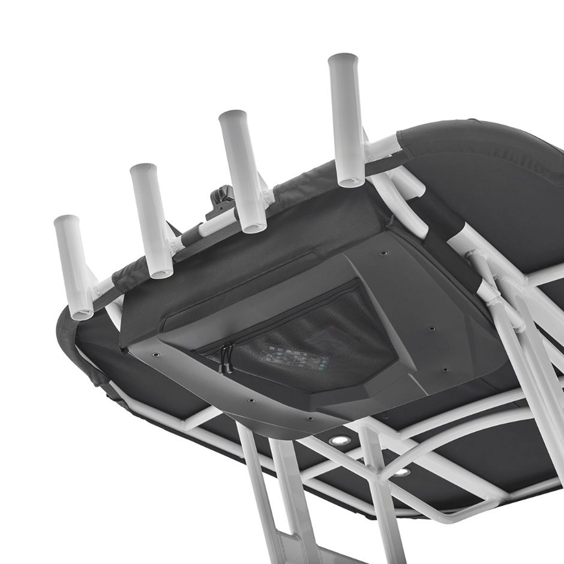 EVA molded-foam provides for a perfect-fit on the 19, 21, and 22 FT canvas t-top. Featuring an exterior mesh pocket for quick access, a zip-down organizer for personal items, and a hanging “net” for PFDs. Installed with Velcro® to the T-Top tubes.