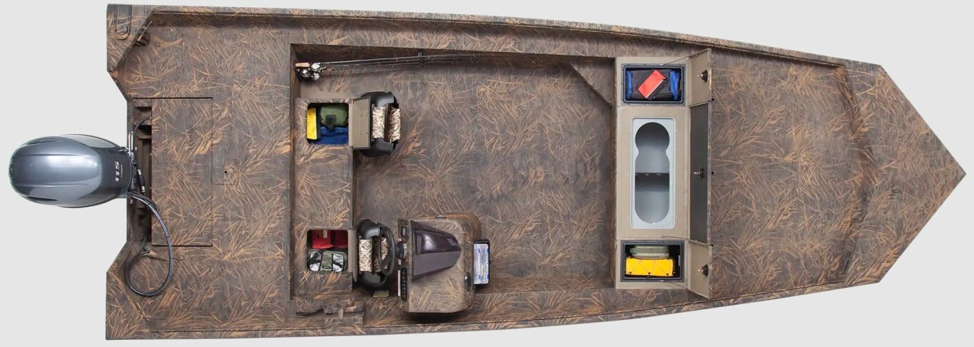 VERSATILE – SPACIOUS PLATFORMWide, open areas give angler room to cast and move around. Under-seat storage, side rod holders, bow storage and livewell with a side console gives the angler just what they need. |