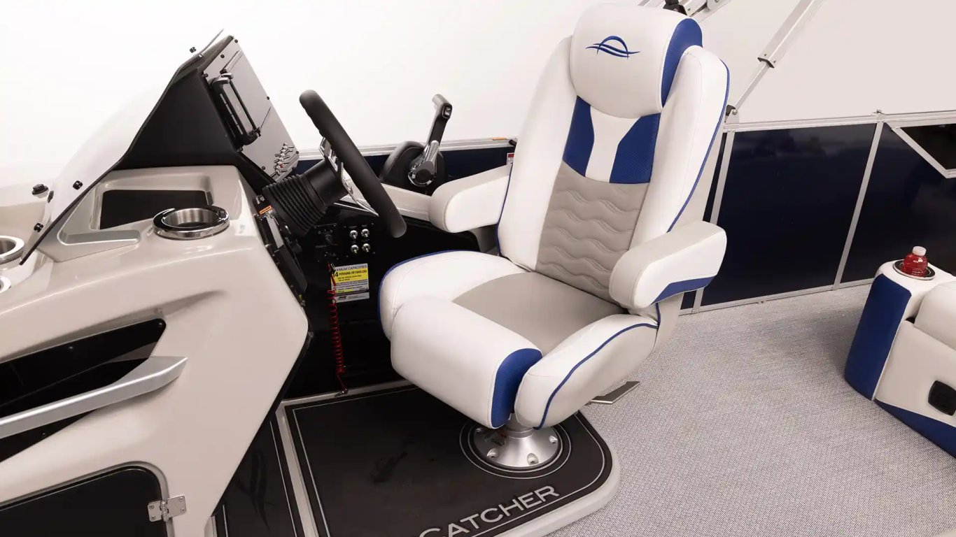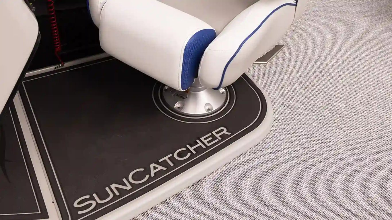 Experience the helm like never before. Elevated platform offers a clear, commanding view, paired with a comfortable footwell mat and stylish SunCatcher branding.