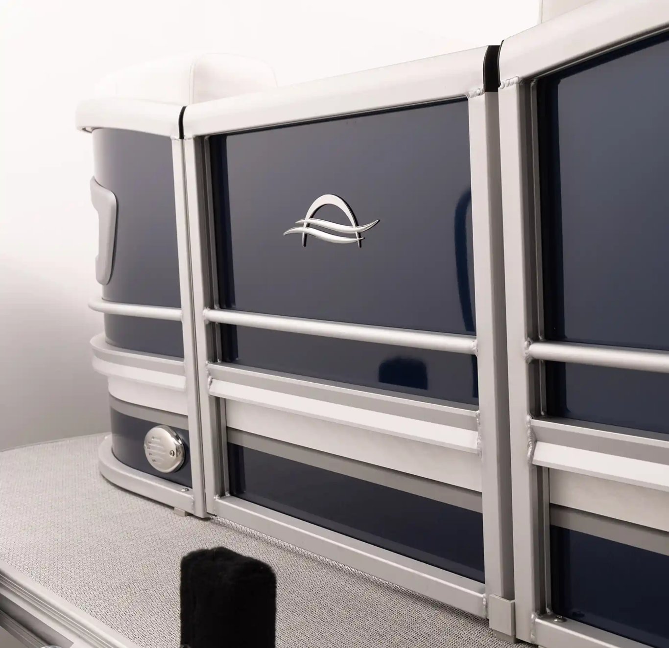 The 2″ main rail provides sturdy support and enhanced safety for passengers. Thoughtfully integrated SunCatcher branding adds a touch of style while reinforcing the boat’s quality and craftmanship.