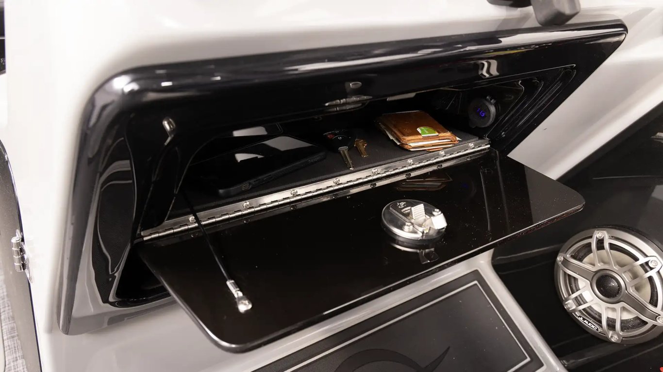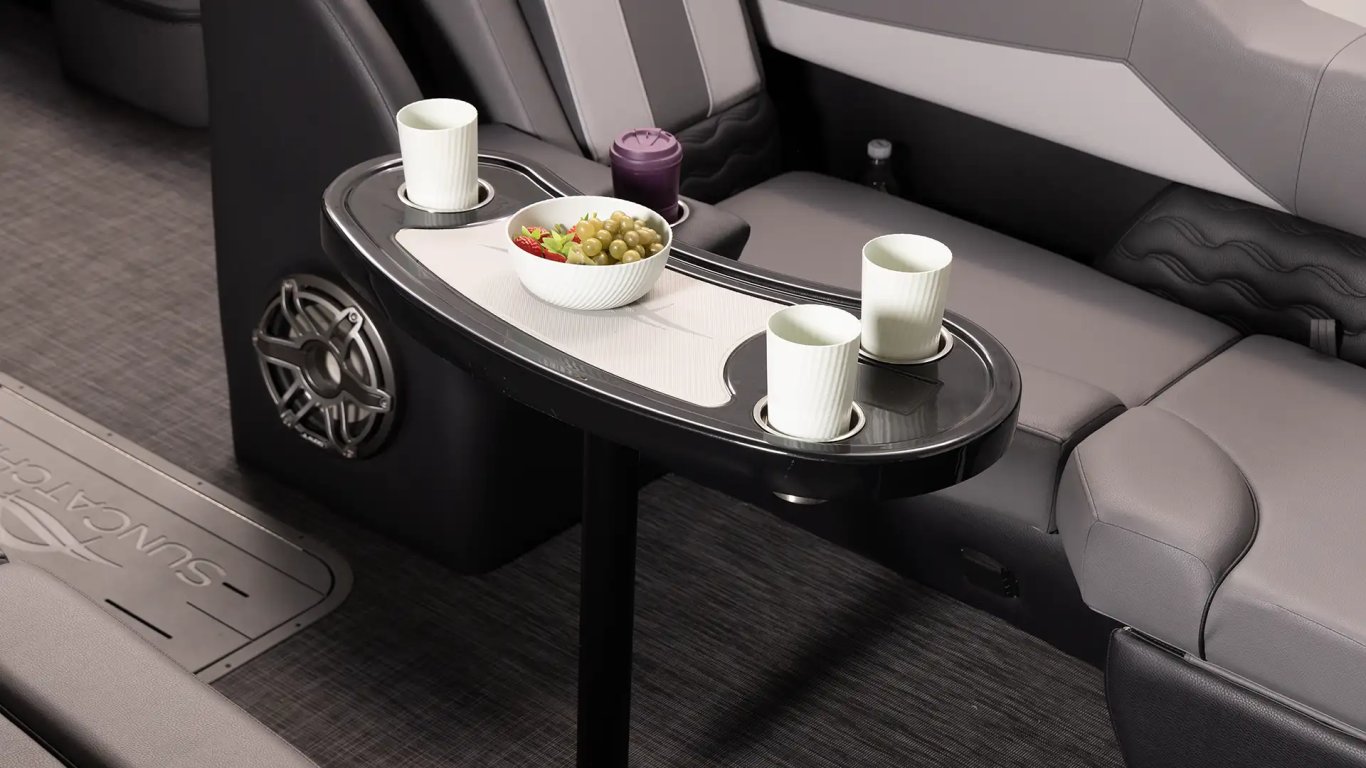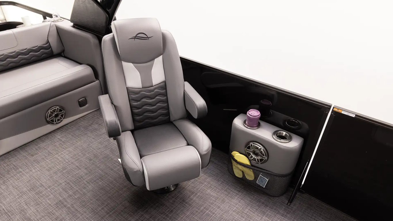 Enhance every ride with a passenger station designed for comfort and style. Positioned on the port side, it features cupholders, discreet storage for personal items, and a built-in speaker.