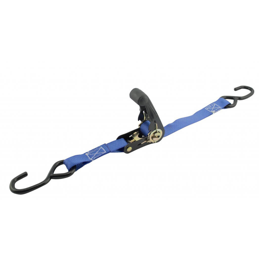 Strap your vehicle or luggage safely and securely. Features a rubber handle ratchet.